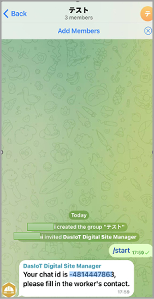 - グループ内で以下を入力します:/start