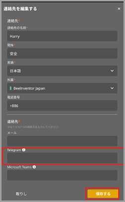 コピーした数字を、対応する人物の連絡先画面に貼り付けます。