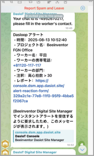 - この設定が完了すると、プラットフォームから警告が発生した場合、Telegram上で警告情報を確認できるようになります。